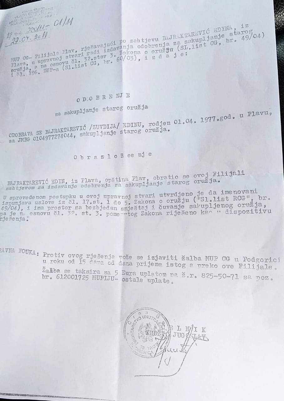 Por sipas portalit Info Plav e verteta duket qe eshte ndryshe meqe i arrestuari Edvin Bajraktareviq qenka koleksionist i armëve te vjetra (te trofeut) dhe per koleksionin e vete posedon lejen adekuate nga organet shtetërore te Malit te Zi qe nga viti 2011 meqë i plotëson te gjitha kushtet ligjore per kete koleksion dhe posedon vendin adekuat per ruajtjen e tij.
